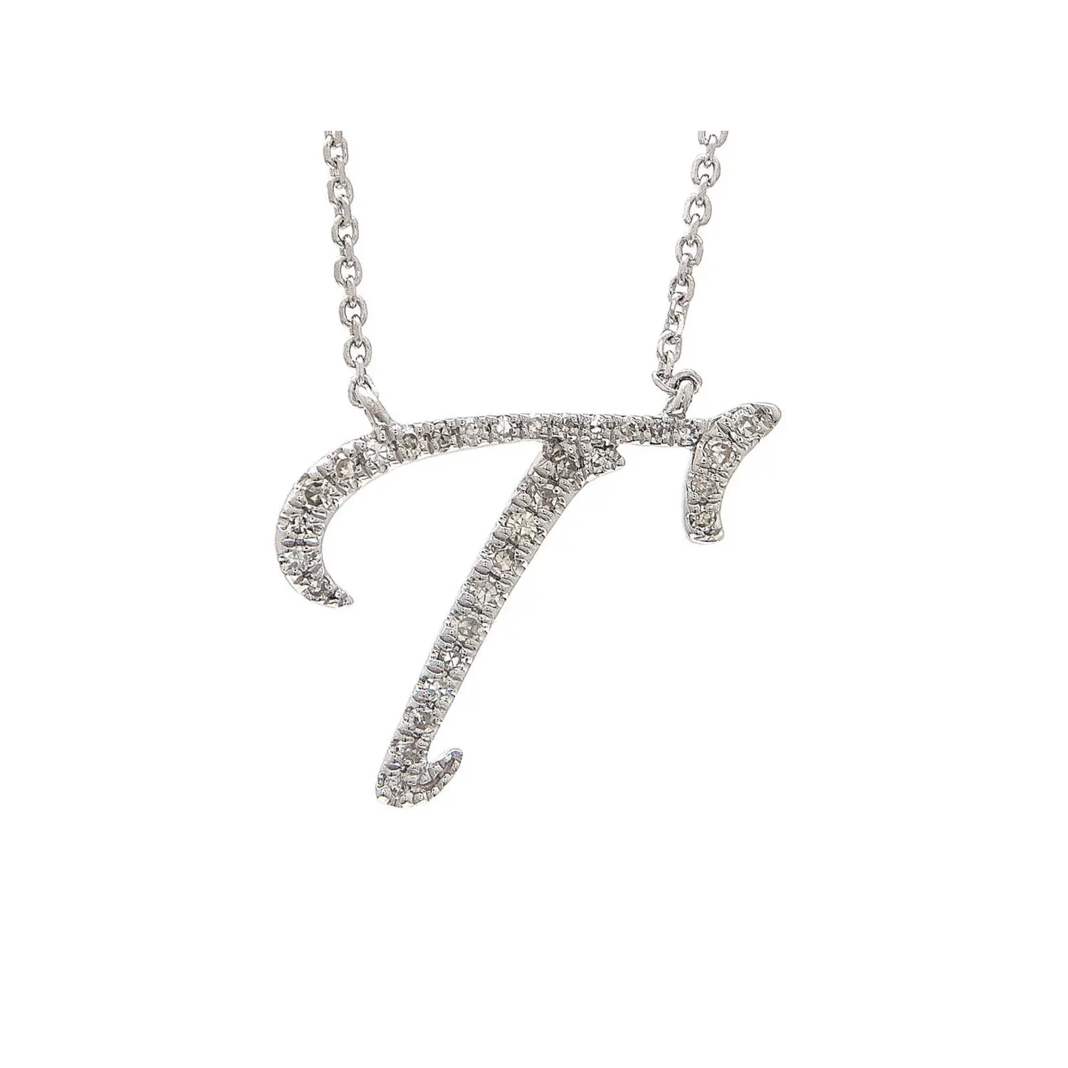 Home/Metal/White Gold 14kt/Initial Script T With Diamonds 14 Karat Gold Necklace 16″ + 2″